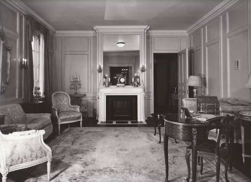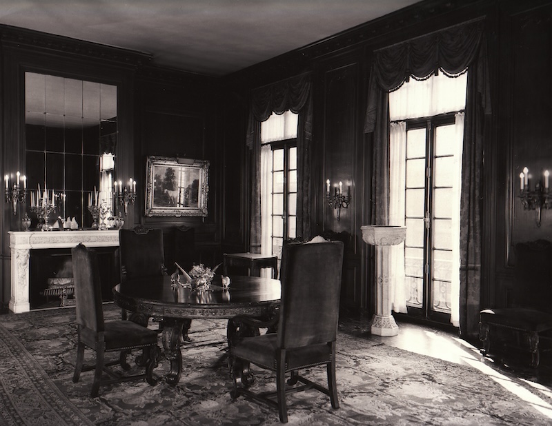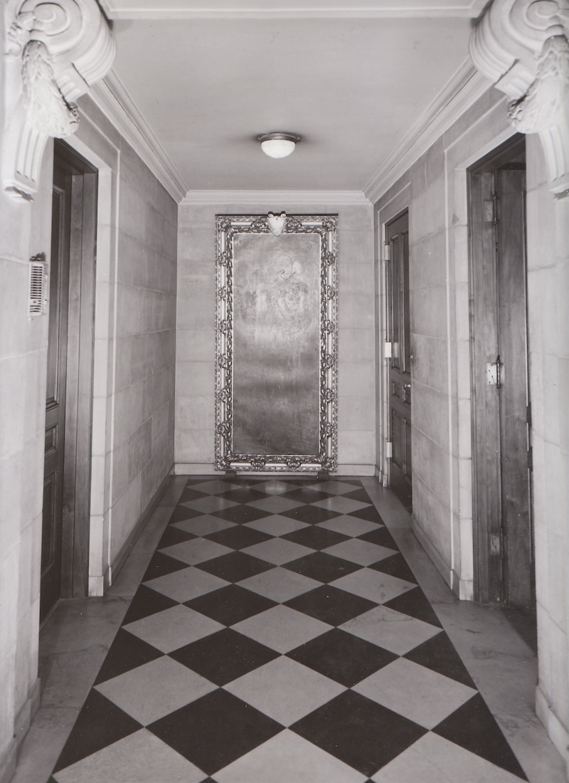 Original interior finishes of polished limestone, Italian marble, decorative plaster, brass fixtures and hardware, eight stone fireplaces, and a gilded metal staircase are among the features which have been preserved.